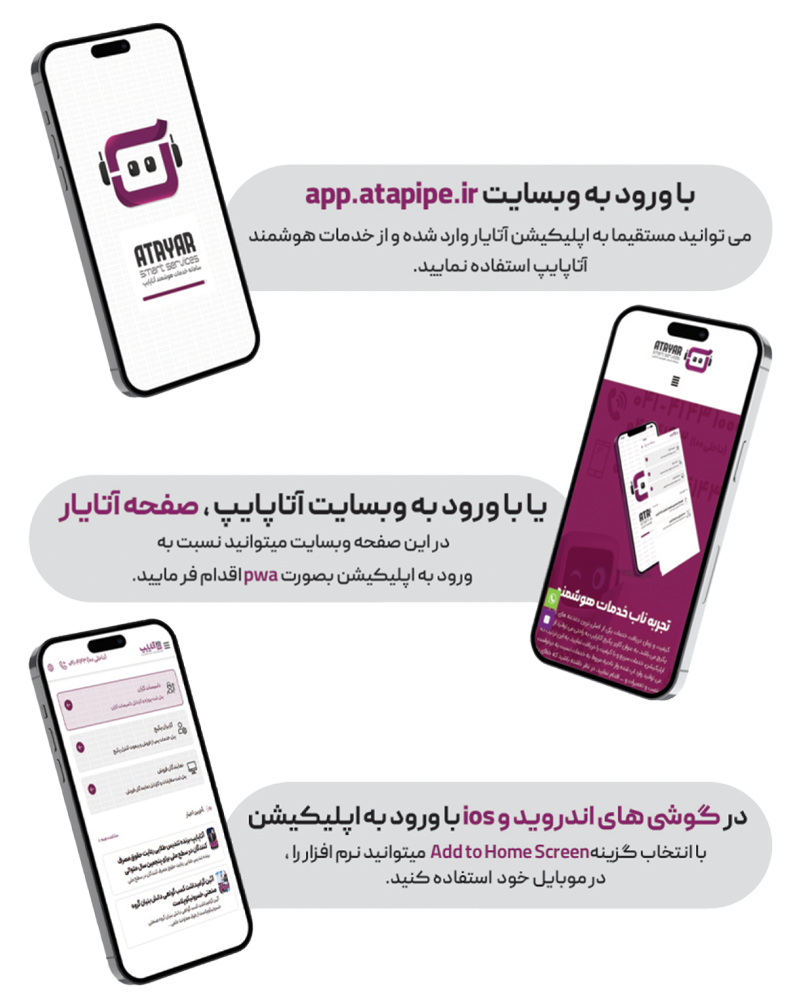 کیفیت و زمان دریافت خدمات یکی از اصلی ترین دغدغه های کاربران پکیچ می باشد. به عنوان کاربر پکیج آتاپایپ به راحتی می توانید از طریق اپلیکیشن، خدمات سریع و با کیفیت را دریافت نمایید. به این ترتیب که می توانید وارد اپ شده واز ناحیه مربوط به خدمات نسبت به درخواست نصب و تعمیرات و … اقدام نمایید. در نظر داشته باشید که خطای رخ داده در پکیج شما بلافاصله روی اَپ، کد مربوط به آن خطا نمایش داده شده و شما به راحتی می توانید از وضعیت خطاهای پکیج خود مطلع شوید.